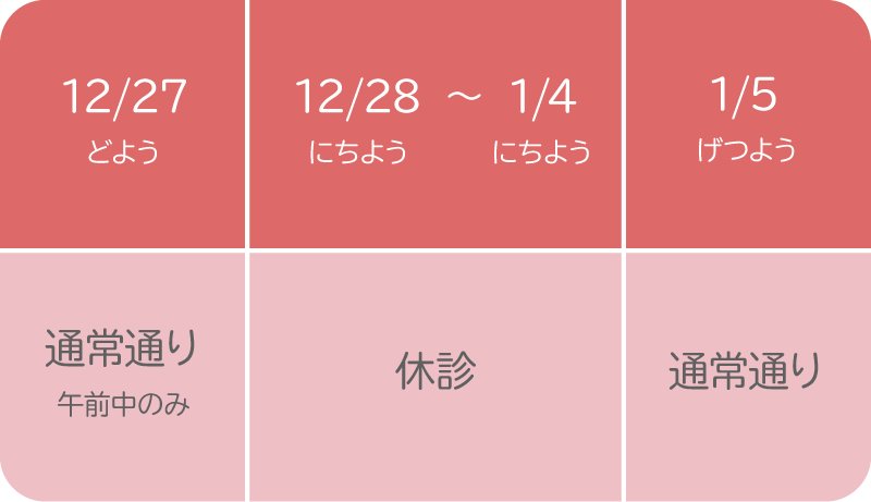 12月27日(土) 通常診療(午前中のみ)